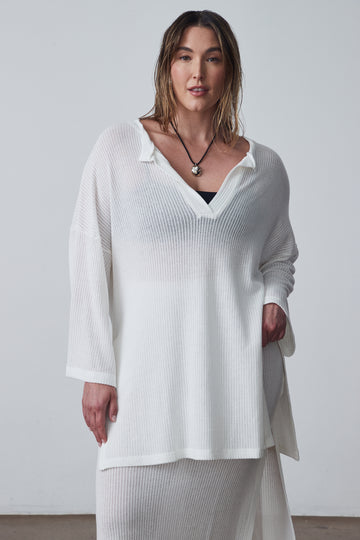 Regular price $115.00Regular priceUnit price / perSale price $115.00Open weave knit tunic in an exaggerated v-neck line with slide slits.