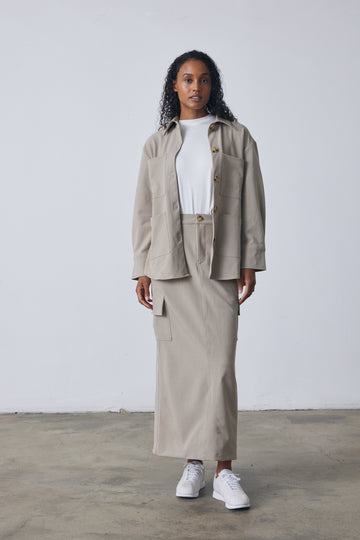 Regular price $135.00Regular priceUnit price / perSale price $135.00Suited cargo skirt with zipper / button enclosure, two side pockets, two cargo pockets, and two back pockets.