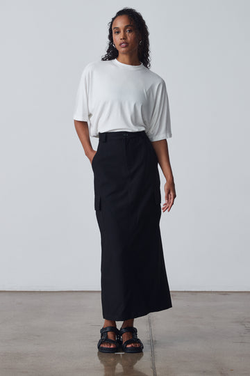 Regular price $135.00Regular priceUnit price / perSale price $135.00Suited cargo skirt with zipper / button enclosure, two side pockets, two cargo pockets, and two back pockets.